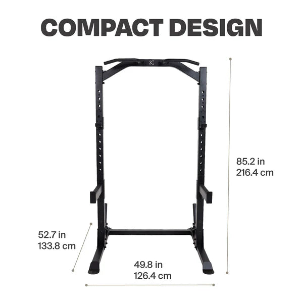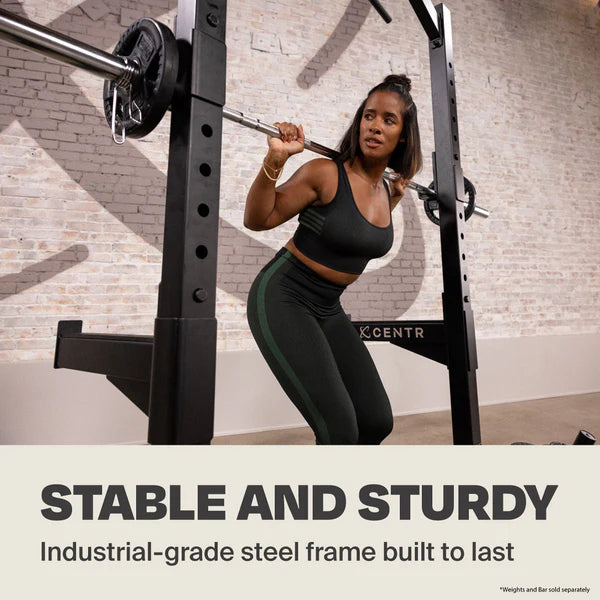 Set a strong foundation for your home gym with this high quality, sturdy, and multi-functional Half Rack. The Centr Half Rack is ideal for traditional free weight training and is perfect for the home due to its small, compact footprint. Equipped with j-hooks and adjustable rubber safeties to dampen bar drops, two built-in weight horns for weight plate storage and a dual multi-grip pull-up station, the Centr Half Rack complements any home gym. Built with a durable, steel frame and wide footpads, it’s safe and made to last. Add a Centr workout bench, olympic bar, and weight plates to complete your home setup and access customised workout programs in the Centr app.